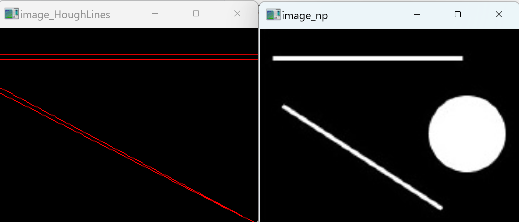 image:输入图像,8位单通道二值图像rho:累加器的距离分辨率theta:累加器的角度分辨率threshold:累加器阈值minLineLength:最小线段长度- 小于此值的线段会被拒绝