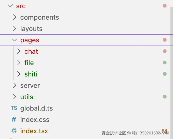 首先,一个约定式路由系统,需要先约定 文件目录, 这里我选 src/pages 目录,然后先对目录做一个整理的大迁移 --- 将原来 src 目录下的页面文件统统移到 src/pages 目录下