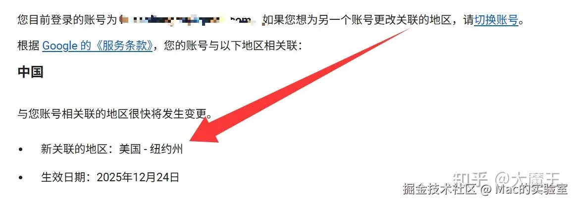 这个方法也是我在网上找的,就是进入这个网址policies.google.com/country-ass...,可以查看当前账号的关联区域。