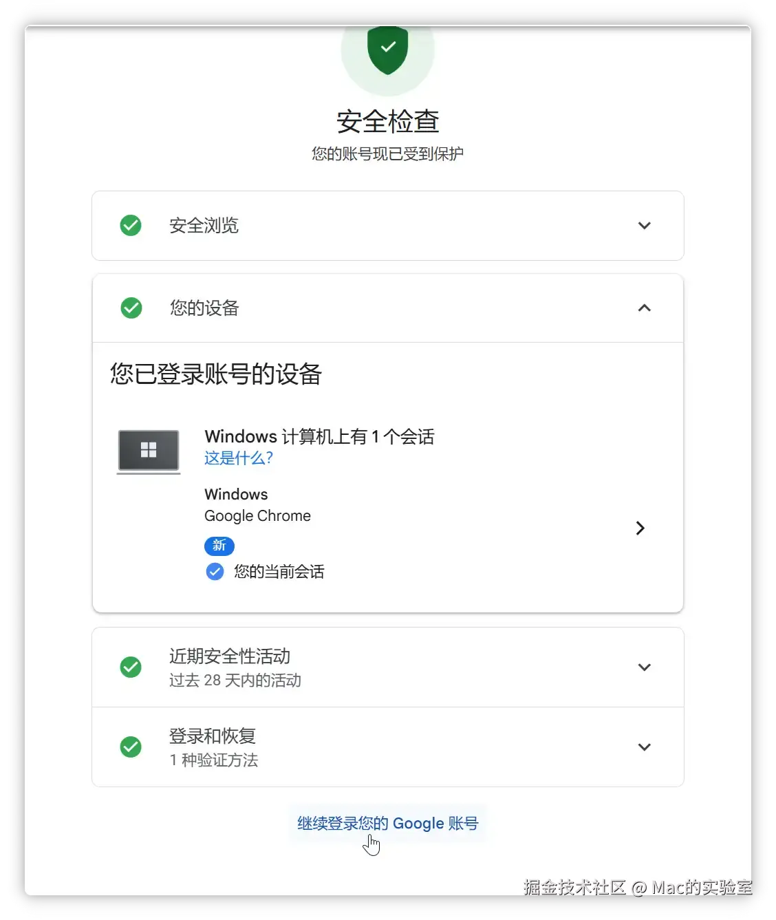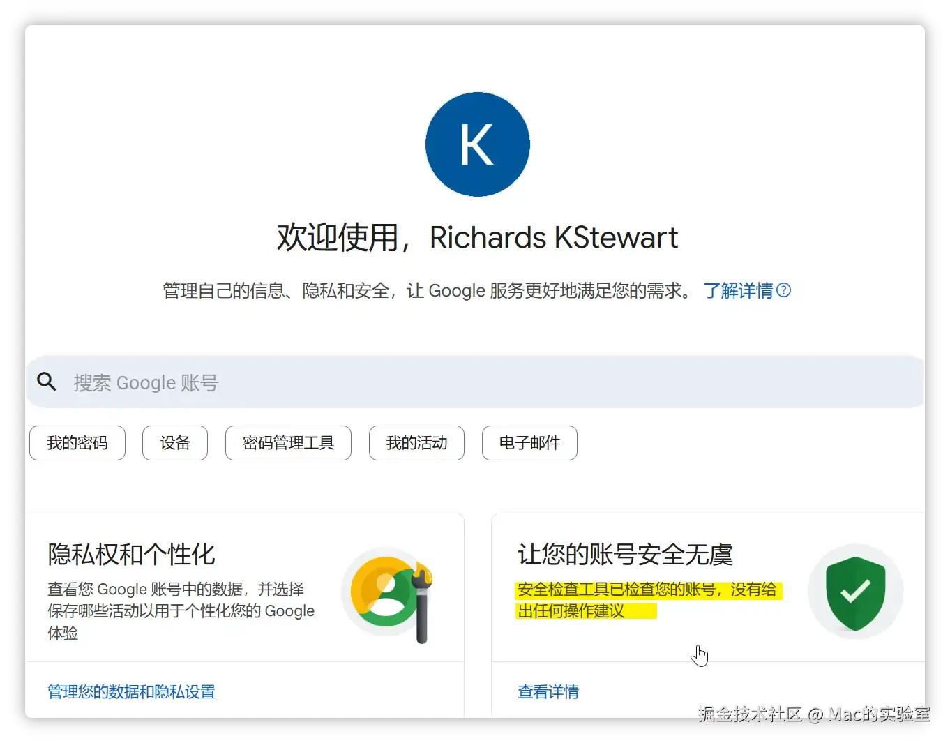 提示安全检查工具已经检查您的账号,没有给出任何操作建议,说明你现在的账号已经相当安全了。