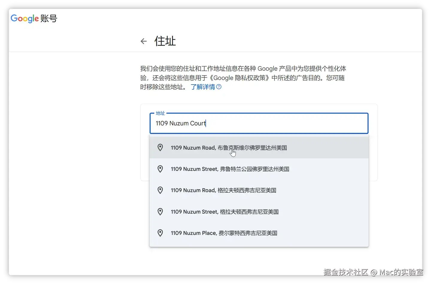 第二个是填写地址,我们在Google上搜一下美国人身份地址,随便填写一个进去就行了
