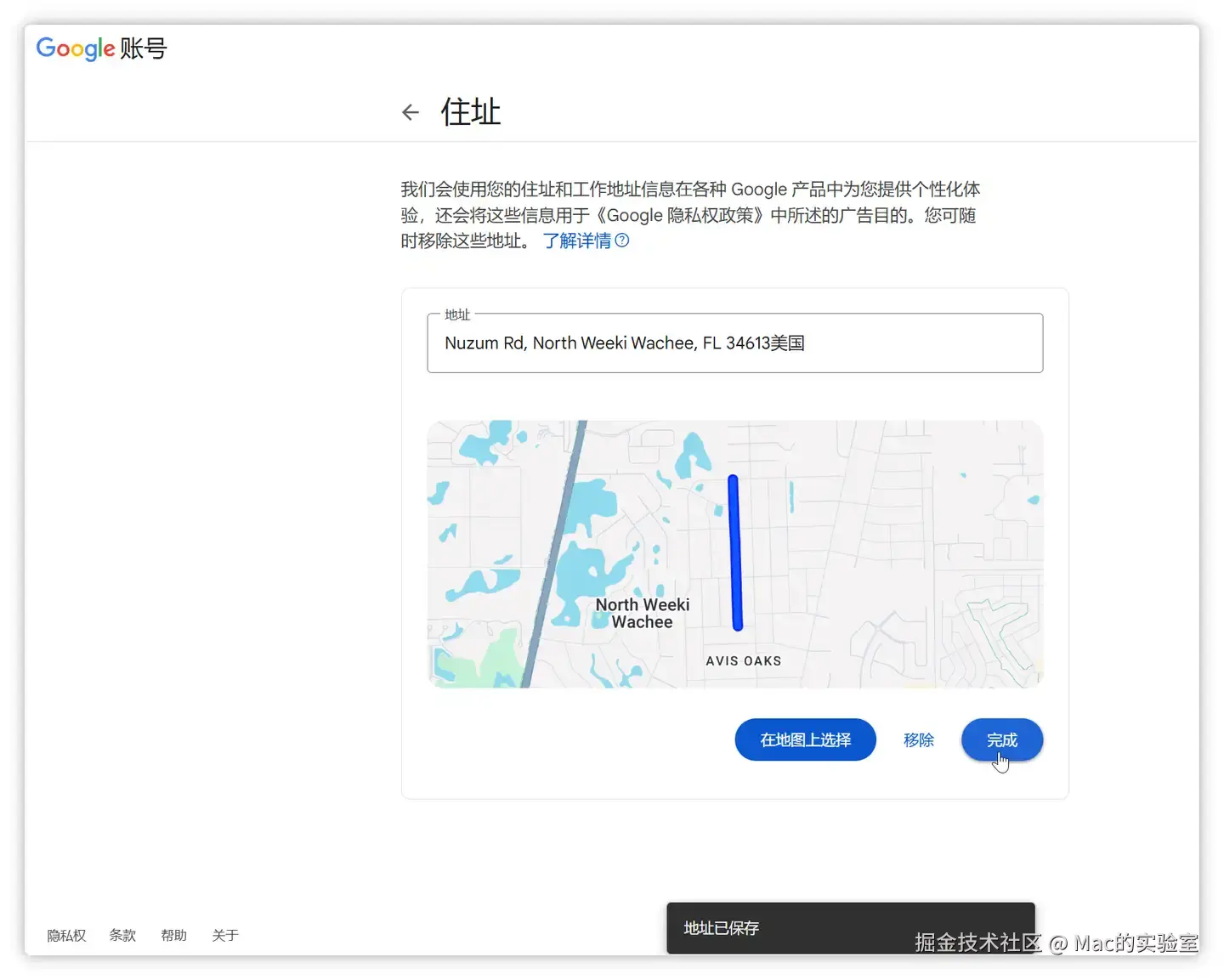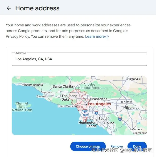 然后,我还把home地址填到美国 加利福尼亚州 洛杉矶,这里居住地址与我IP地址相同。