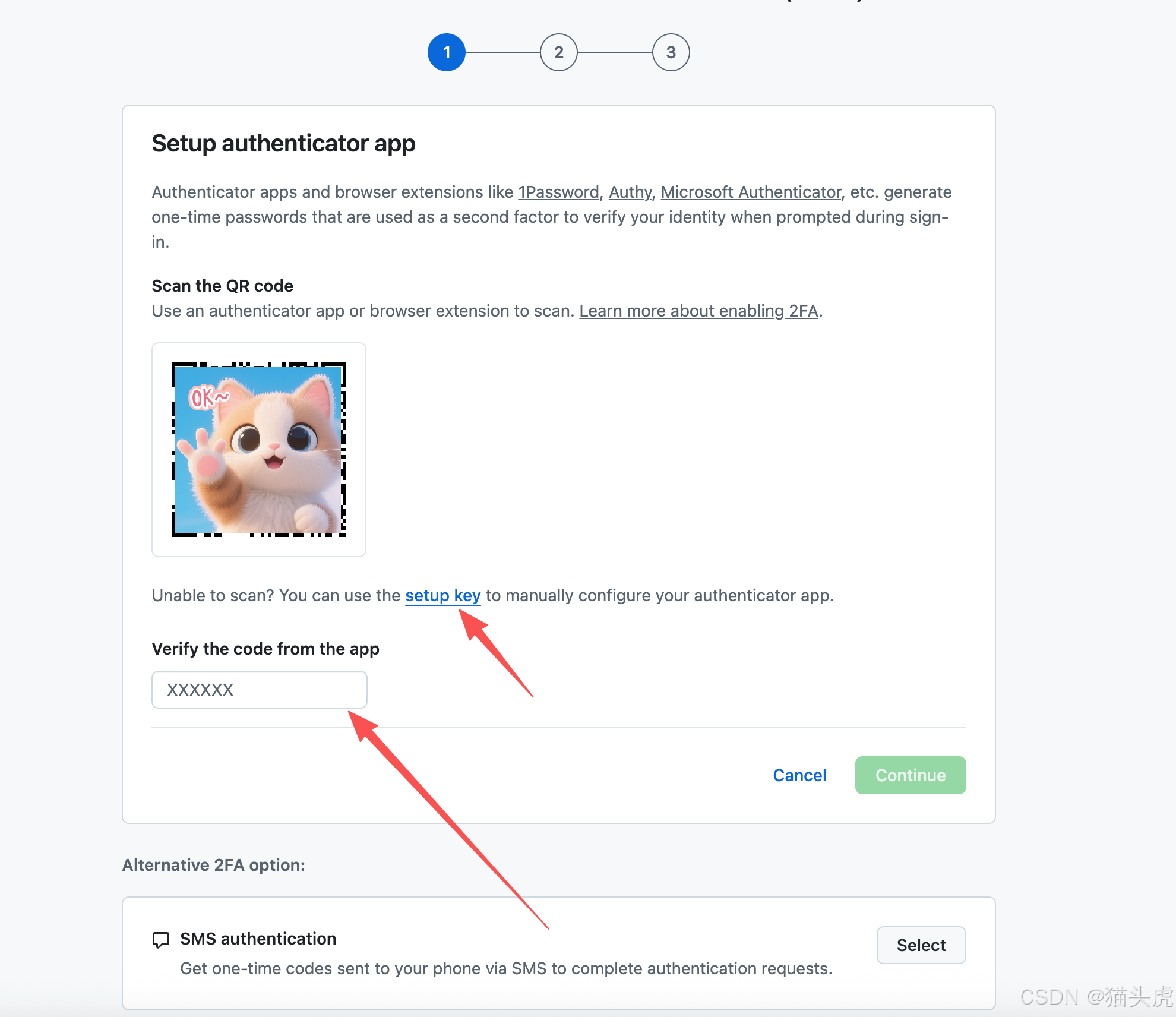 - 在 GitHub 获取密钥(Setup key)或二维码。