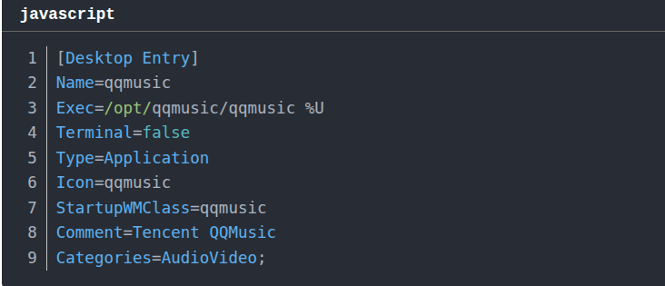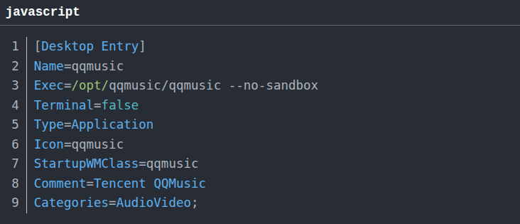保存后即可运行。如果提示没有写入权限,修改文件权限即可(sudo chmod 777 qqmusic.desktop)