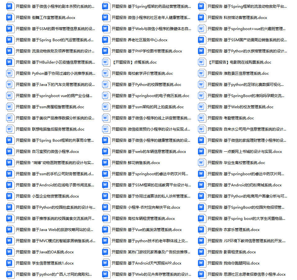 以上是某同学的毕业设计答辩的过程,如果你现在还没有参加答辩,还是开题阶段,已经选好了题目不知道怎么写开题报告,可以下面找找有没有自己符合自己题目的开题报告内容,列表中的开题报告都是往届真实的开题报告,可发送使用或参考。文末或底部来联xi可免费获取