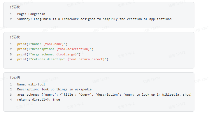 print(f"args schema: {tool.args}") # 输入参数结构(旧版属性,实际推荐看 tool.args_schema)