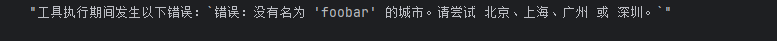 raise ToolException(f"错误:没有名为 '{city}' 的城市。请尝试 北京、上海、广州 或 深圳。")