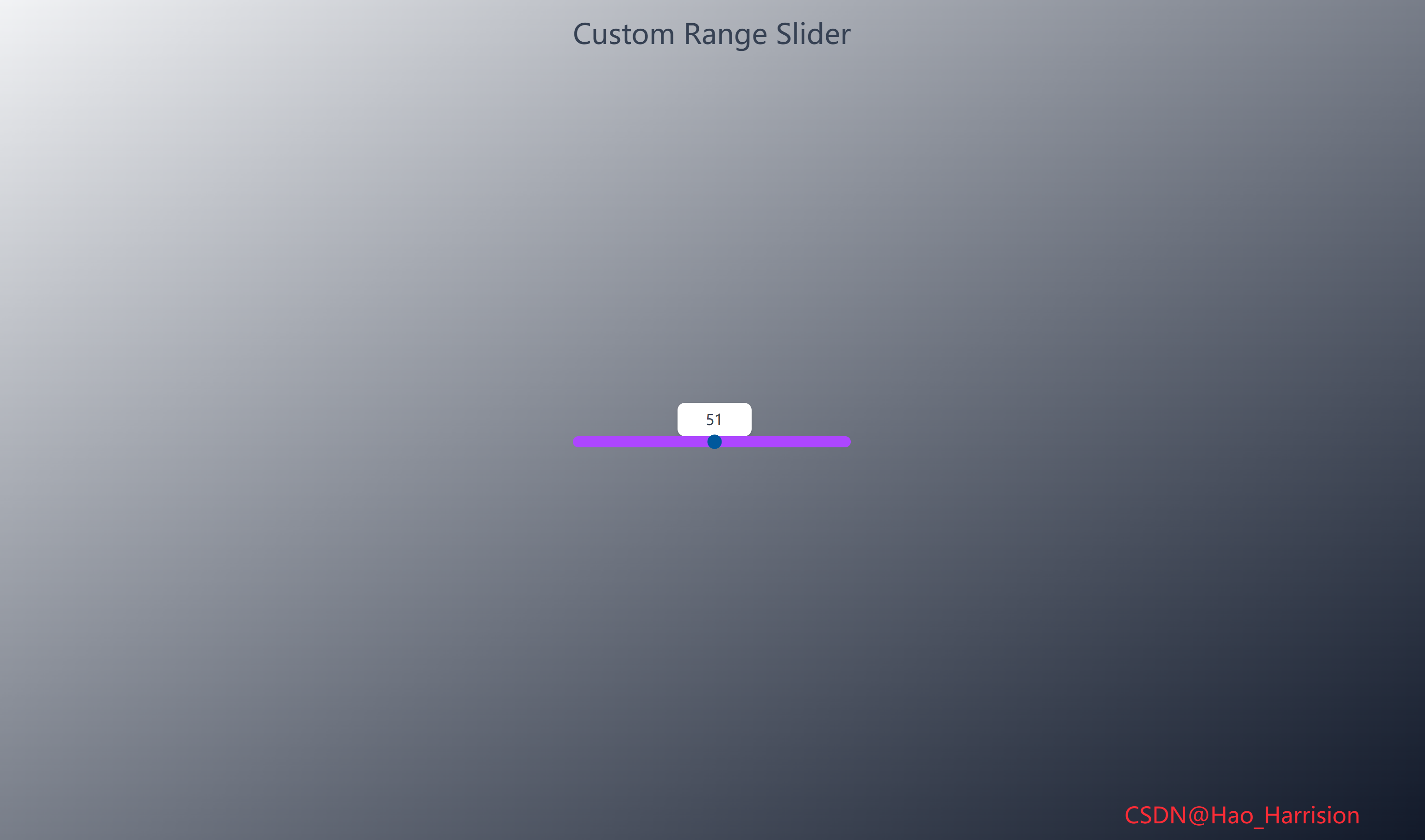 构建一个视觉效果出众的自定义范围滑块(Range Slider)。这个滑块的独特之处在于,它的数值标签会随着滑块的拖动而动态移动,并始终保持在滑块拇指(thumb)的正上方,提供极佳的用户体验。