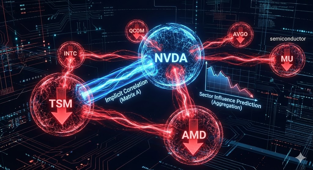 模型不仅仅看"英伟达"自己的历史走势,还会通过图聚合"台积电"和"AMD"的走势特征。如果整个"半导体板块"(邻居们)都在跌,模型会利用这个空间信息预测英伟达也会跌。