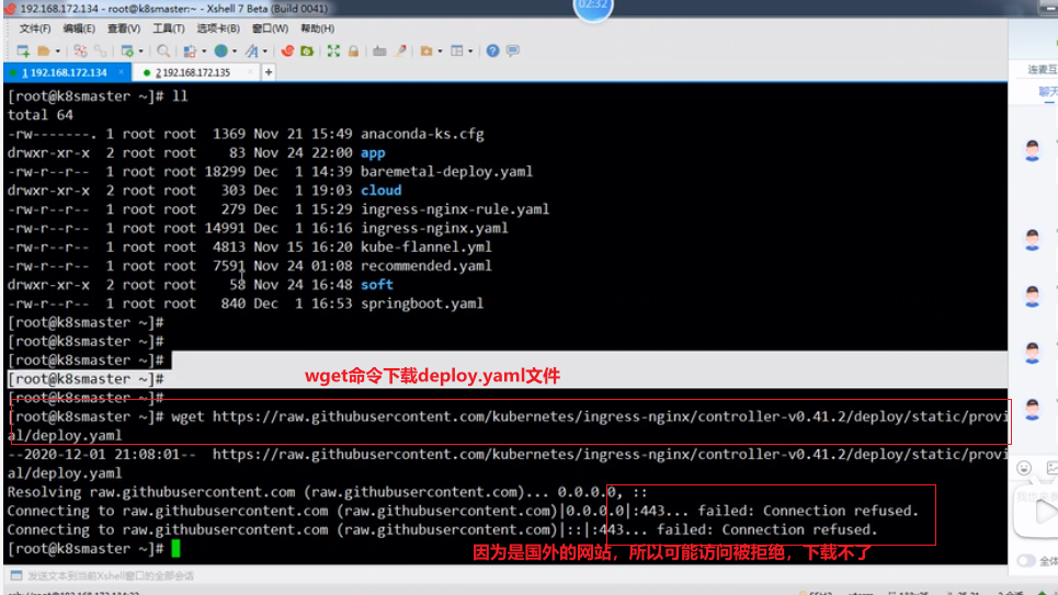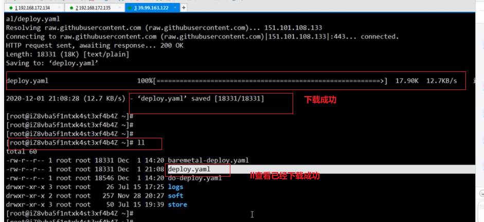 2.在服务器wget命令下载官网上的deploy.yaml文件,sz下载到本地