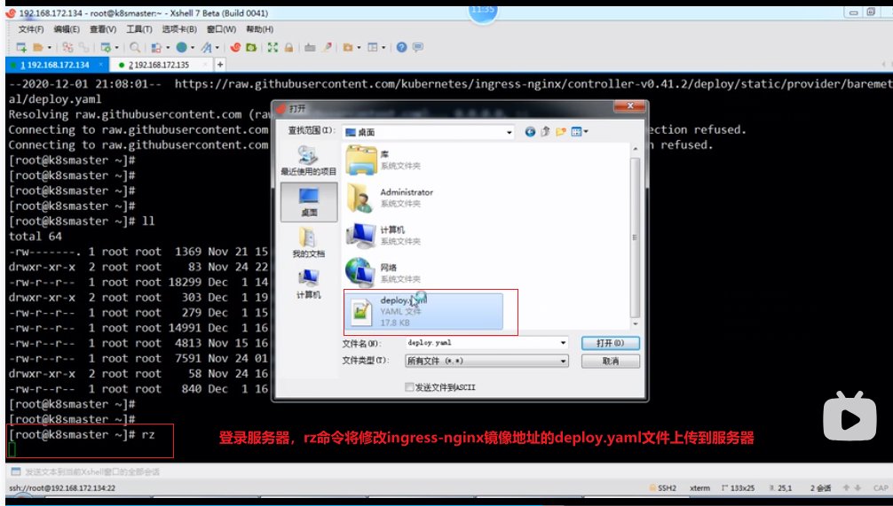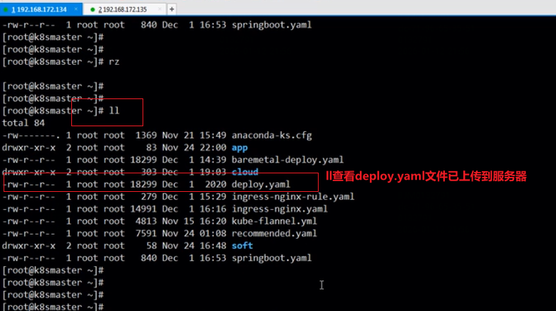 4.rz命令将本地修改的deploy.yaml文件上传到服务器: