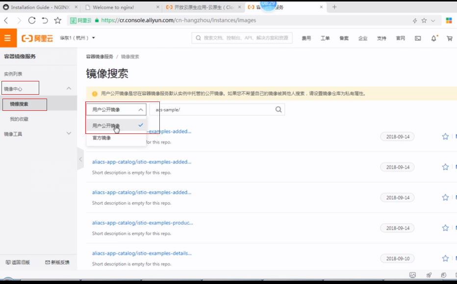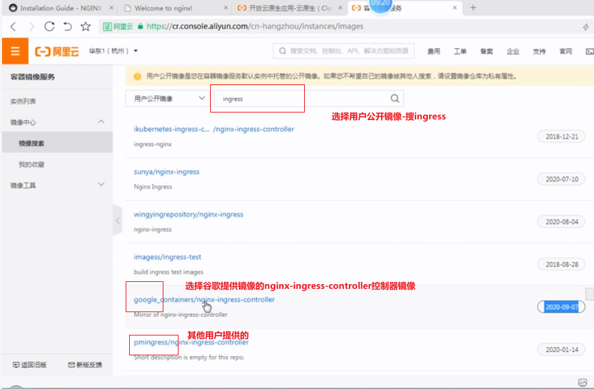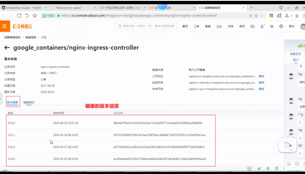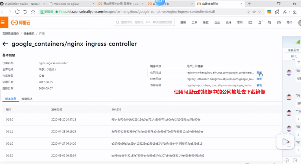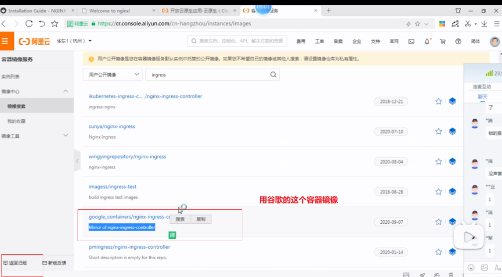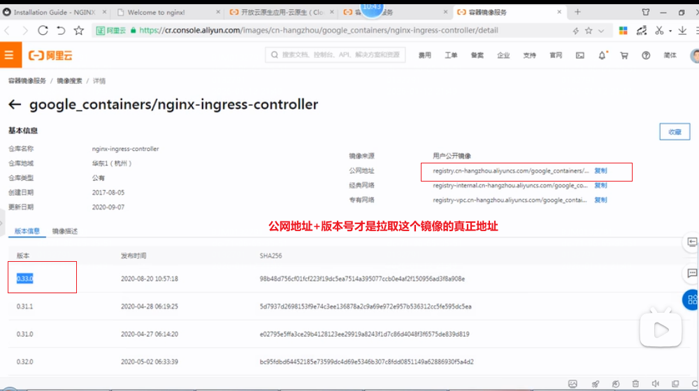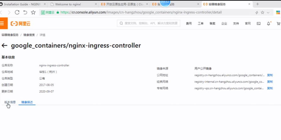 选择谷歌镜像:google_containers/nginx-ingress-controller,选择阿里云镜像最新版本修改deploy.yaml文件中的拉取镜像地址