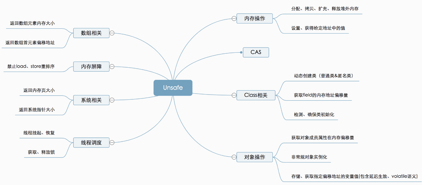 Unsafe类提供了如下接口操作内存,不仅可以操作JVM堆内存,还能操作JVM外的内存。