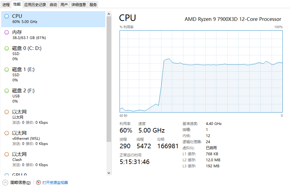 可以看见cpu消耗突然到了百分之60