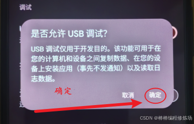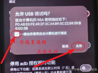 "一律允许使用这台计算机进行调试"前面的复选框,然后点击允许: