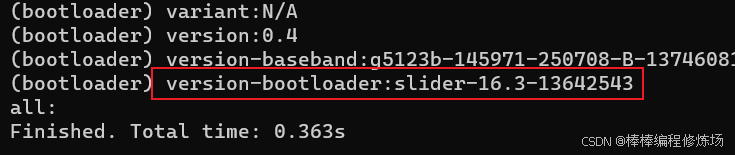 # 目前我的bootloader版本是高于定制系统的 所以在刷系统前我确认了一下a分区和b分区的bootloader版本是一致的