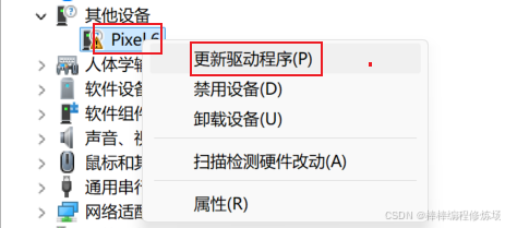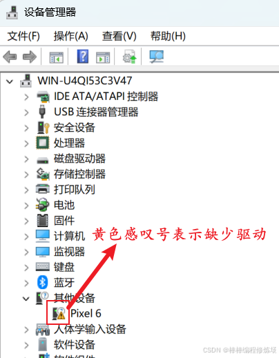在 Windows 设备管理器中查看 USB 连接的手机,如下图所示: