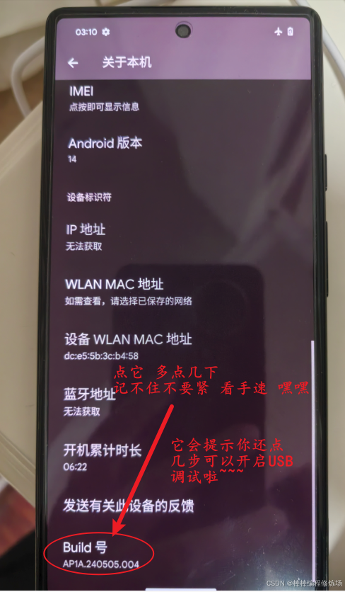 开启开发者选项。进入 设置 ⇒ 关于本机 ,连续点击 版本号 (Build Number) 7次,提示