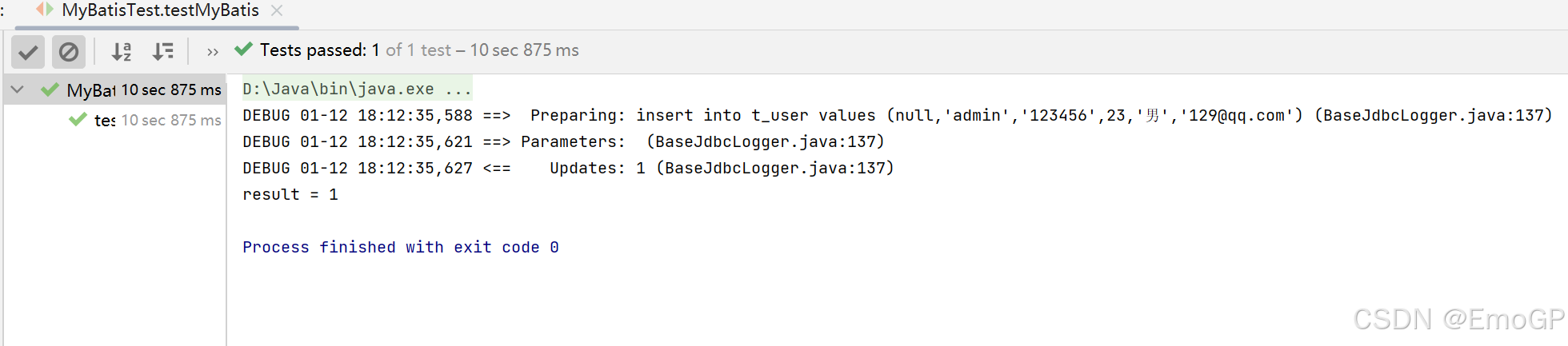 int result = mapper.insertUser();