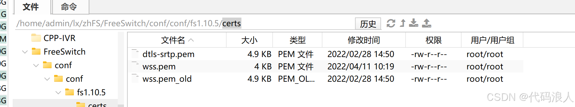 把xxx.key文件和xxx.pem文件上传到freeswitch安装目录的certs目录下,如/usr/local/freeswitch/certs。