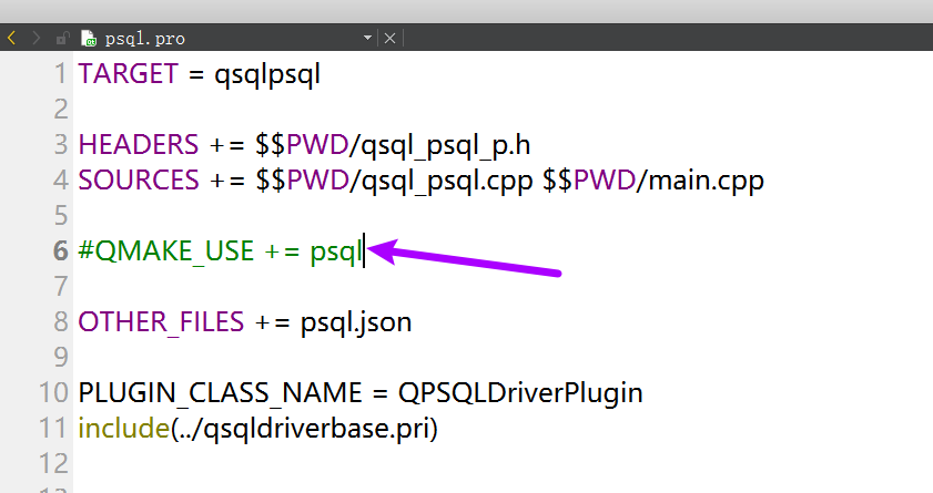 注释掉psql.pro中QMAKE_USE这一行
