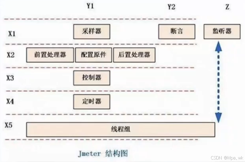 八大组件:线程组 ,配置元件,前置处理器,定时器,取样器,后置处理器