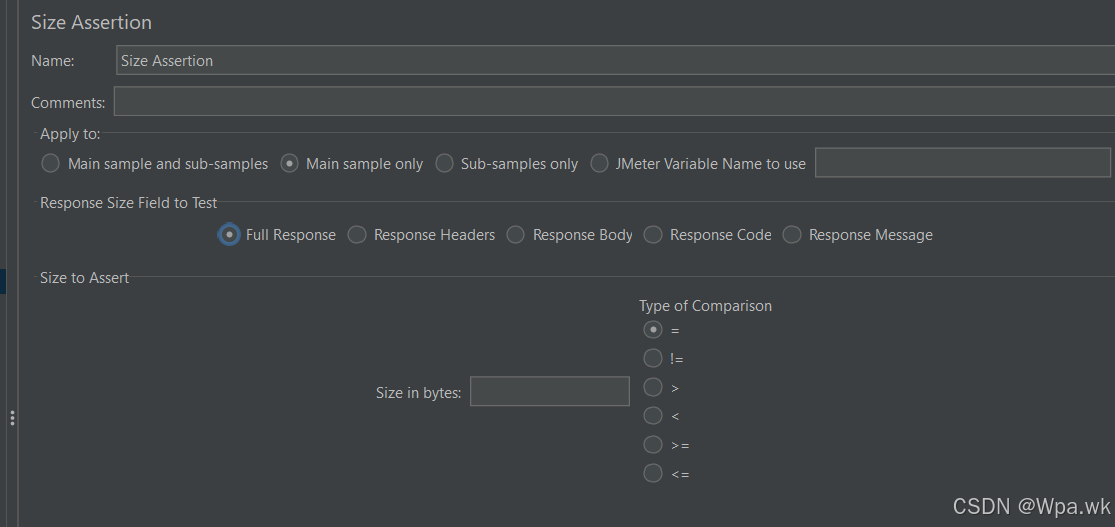 Size Assertion : 是一种断言元件,用于验证服务器响应的内容的大小是否符合预期。