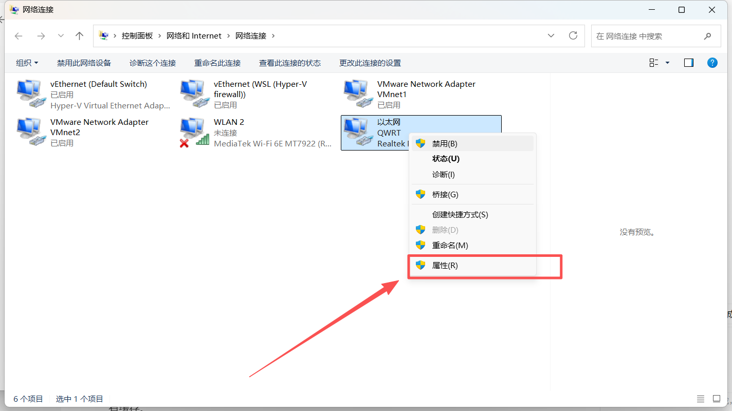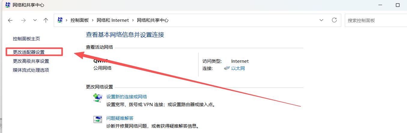 控制面板->网络和共享中心->更改适配器设置-> 右键点击你正在使用的网络 ->属性-> 取消勾选 "Internet 协议版本 6 (TCP/IPv6)"。我的是Windows11电脑,就以此示例进入