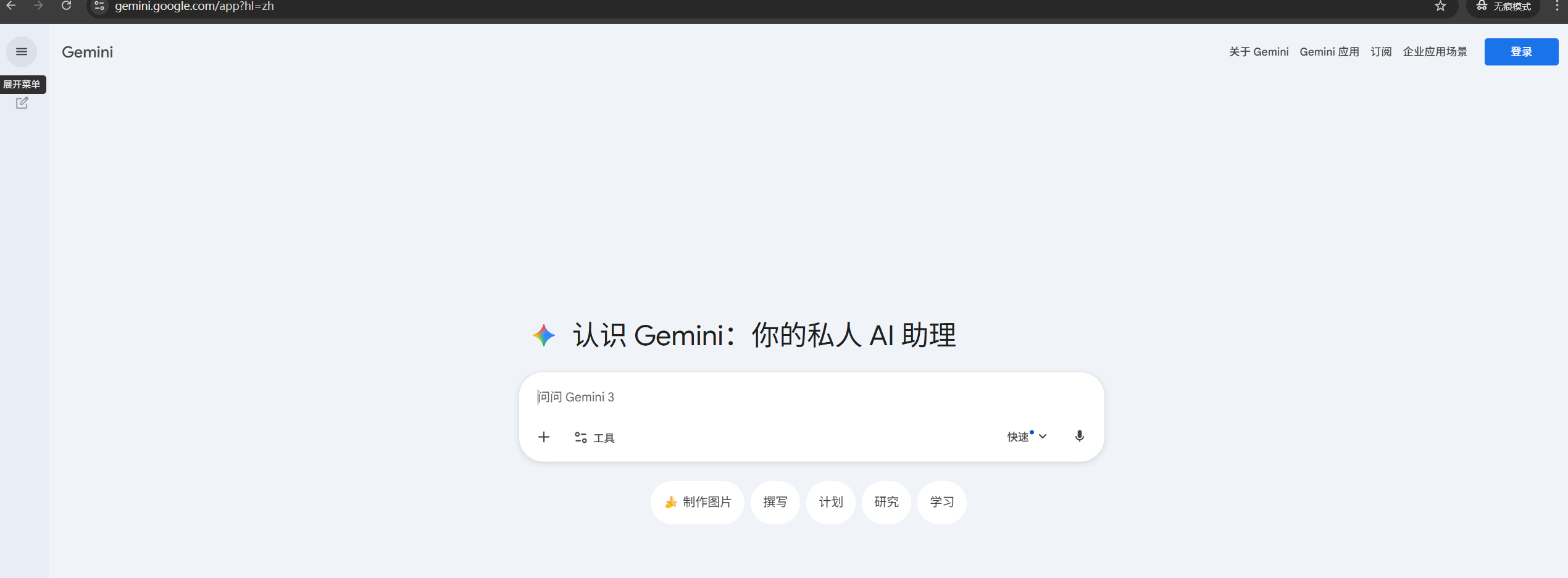 操作: 按 Ctrl + Shift + N 打开无痕窗口,再次访问 gemini.google.com。
