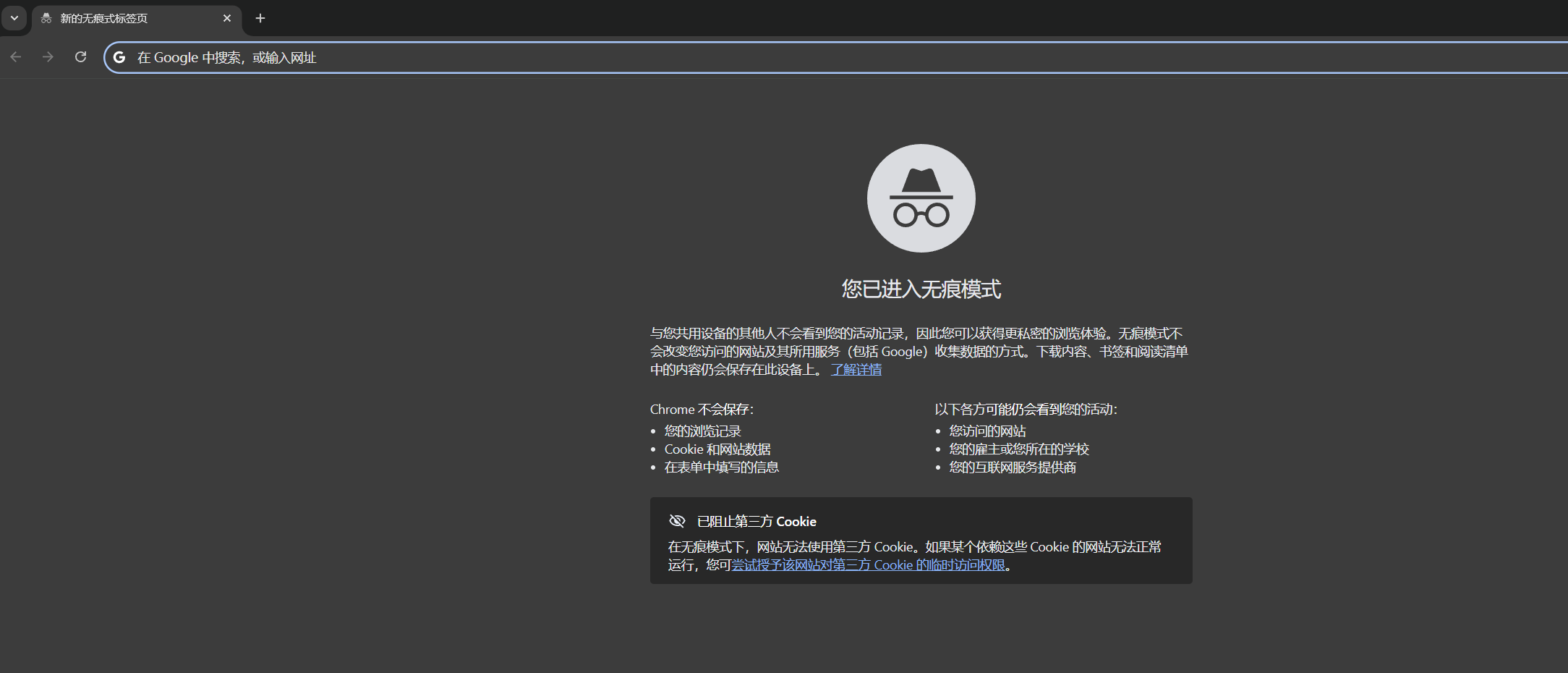 Ctrl + Shift + N打开 无痕模式(Incognito)。