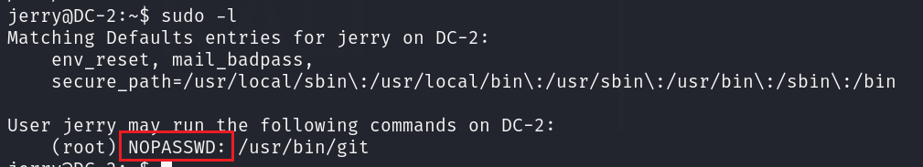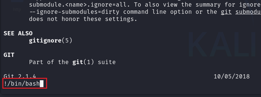 使用 git 命令进行提权,在执行以下命令后直接在末尾输入!/bin/bash,然后按下回车,进入 root 用户。