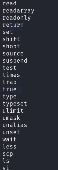 该命令可以查询 rbash(以及普通 Bash)环境中当前用户已授权、可直接执行的程序 / 命令列表。