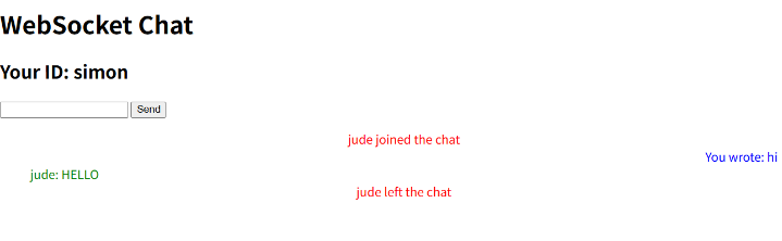 用户B的WebSocket 用户A的WebSocket ConnectionManager chat.py 用户B浏览器 用户A浏览器 用户B的WebSocket 用户A的WebSocket ConnectionManager chat.py 用户B浏览器 用户A浏览器 1. 用户A登录(打开页面) 2. 用户B登录(打开页面) 3. 用户A发送消息 4. 用户B发送消息 5. 用户A退出登录(关闭页面) GET /chatroom/alice 返回 chatroom.html (username=alice) WebSocket 连接 /chatroom/alice connect(websocket_A) accept() 接受连接 active_connections.append(websocket_A) broadcast("alice joined", exclude=websocket_A) send_json("alice joined") GET /chatroom/bob 返回 chatroom.html (username=bob) WebSocket 连接 /chatroom/bob connect(websocket_B) accept() 接受连接 active_connections.append(websocket_B) broadcast("bob joined", exclude=websocket_B) send_json("bob joined") send("hello") broadcast({sender:"alice", message:"hello"}, exclude=websocket_A) send_json({sender:"alice", message:"hello"}) send_personal_message({sender:"You", message:"hello"}, websocket_A) send_json({sender:"You", message:"hello"}) 显示"alice: hello"(绿色,左对齐) 显示"You wrote: hello"(蓝色,右对齐) send("hi alice") broadcast({sender:"bob", message:"hi alice"}, exclude=websocket_B) send_json({sender:"bob", message:"hi alice"}) send_personal_message({sender:"You", message:"hi alice"}, websocket_B) send_json({sender:"You", message:"hi alice"}) 显示"bob: hi alice"(绿色,左对齐) 显示"You wrote: hi alice"(蓝色,右对齐) WebSocketDisconnect disconnect(websocket_A) active_connections.remove(websocket_A) broadcast("alice left the chat") send_json("alice left the chat") 显示"alice left the chat"(红色,居中)