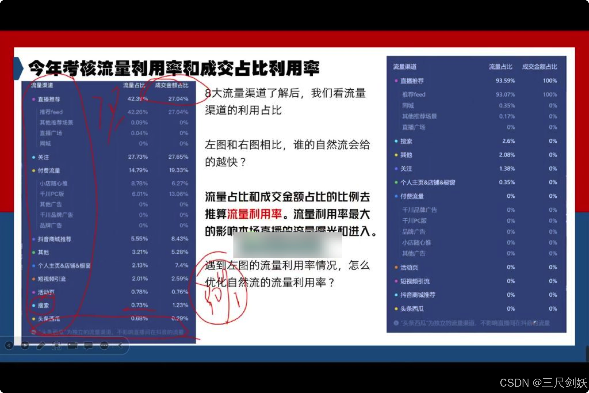- 自然流优化:当自然流成交占比低于流量占比时,需重点优化直播间的转化能力。