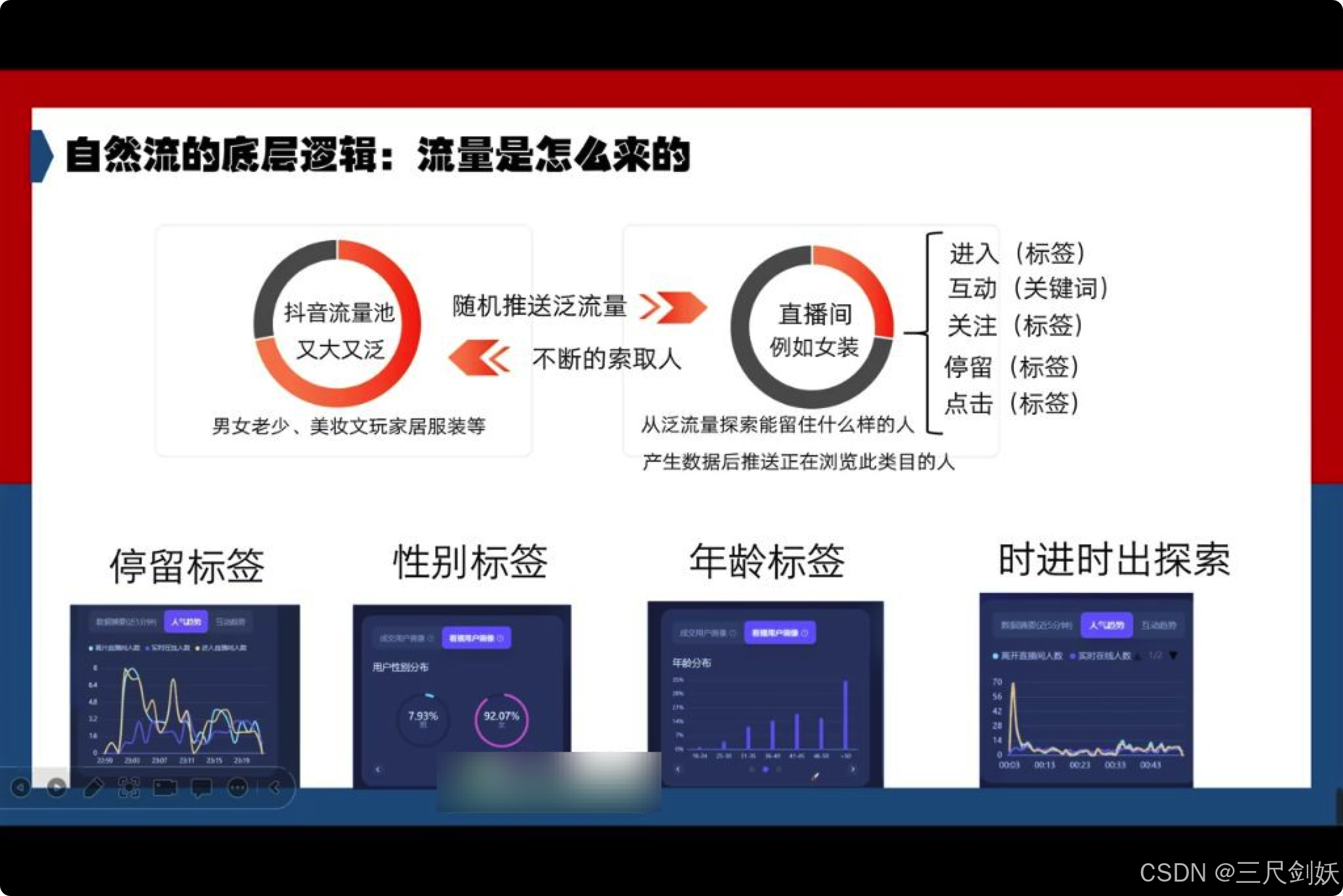 - 教学安排:本节课主要完成第三节内容讲解,下节课将重点讲解抖音直播间自然流的算法原理。