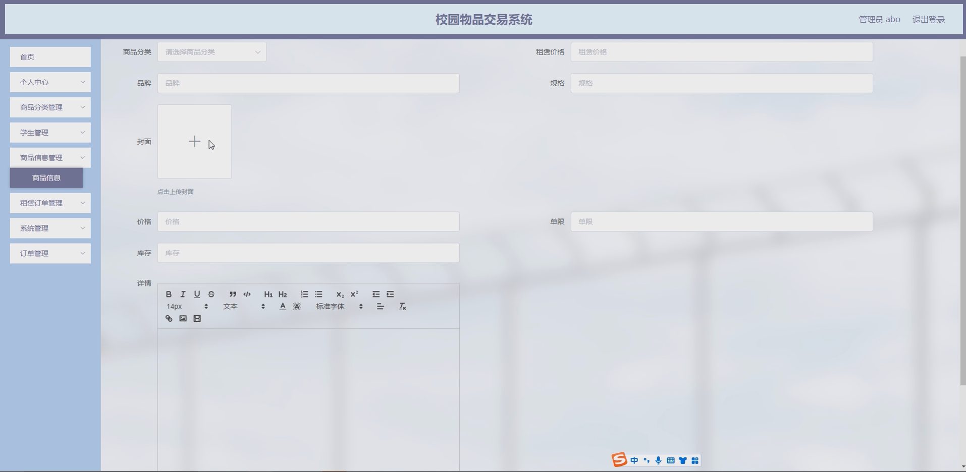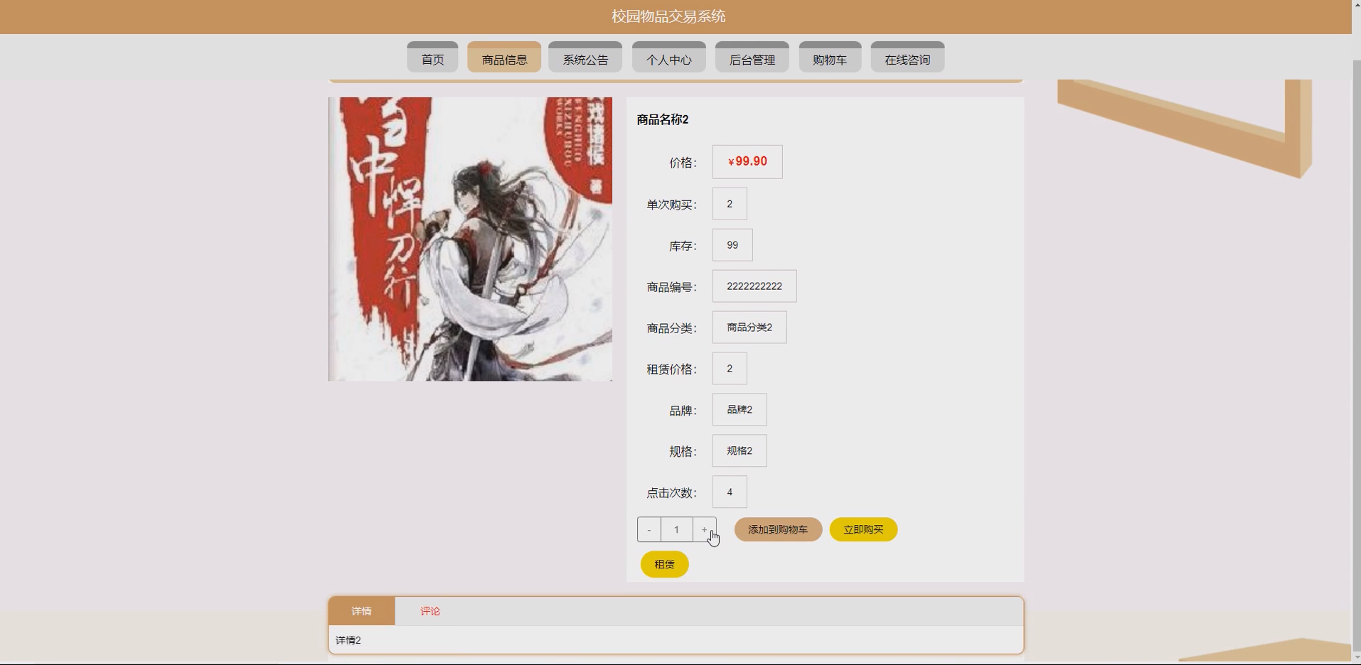 系统项目功能:商品分类,学生,商品信息,租赁订单