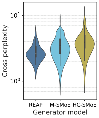 图解:cross perplexity,Merging 与原模型分布偏离更大。