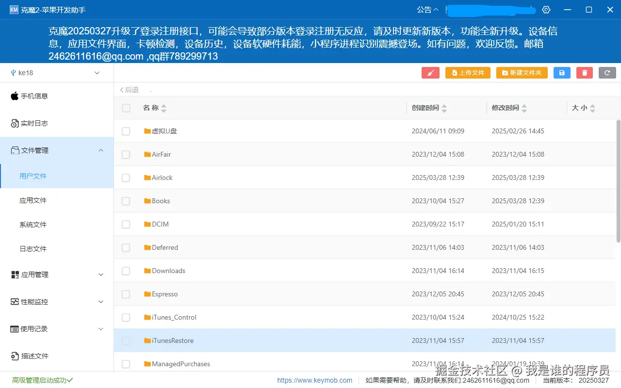 在 iOS 生态里谈"文件管理",往往很容易变成一句空话。系统沙盒、权限隔离、Finder/iTunes 的抽象封装,让很多开发者和测试同学习惯性地绕开"文件"这个层面,转而通过接口、日志或导出功能解决问题。但当你需要 真实地看到设备里的文件结构、拿到 App 产生的原始数据、做一次完整备份或问题复现 时,文件管理就绕不过去了。