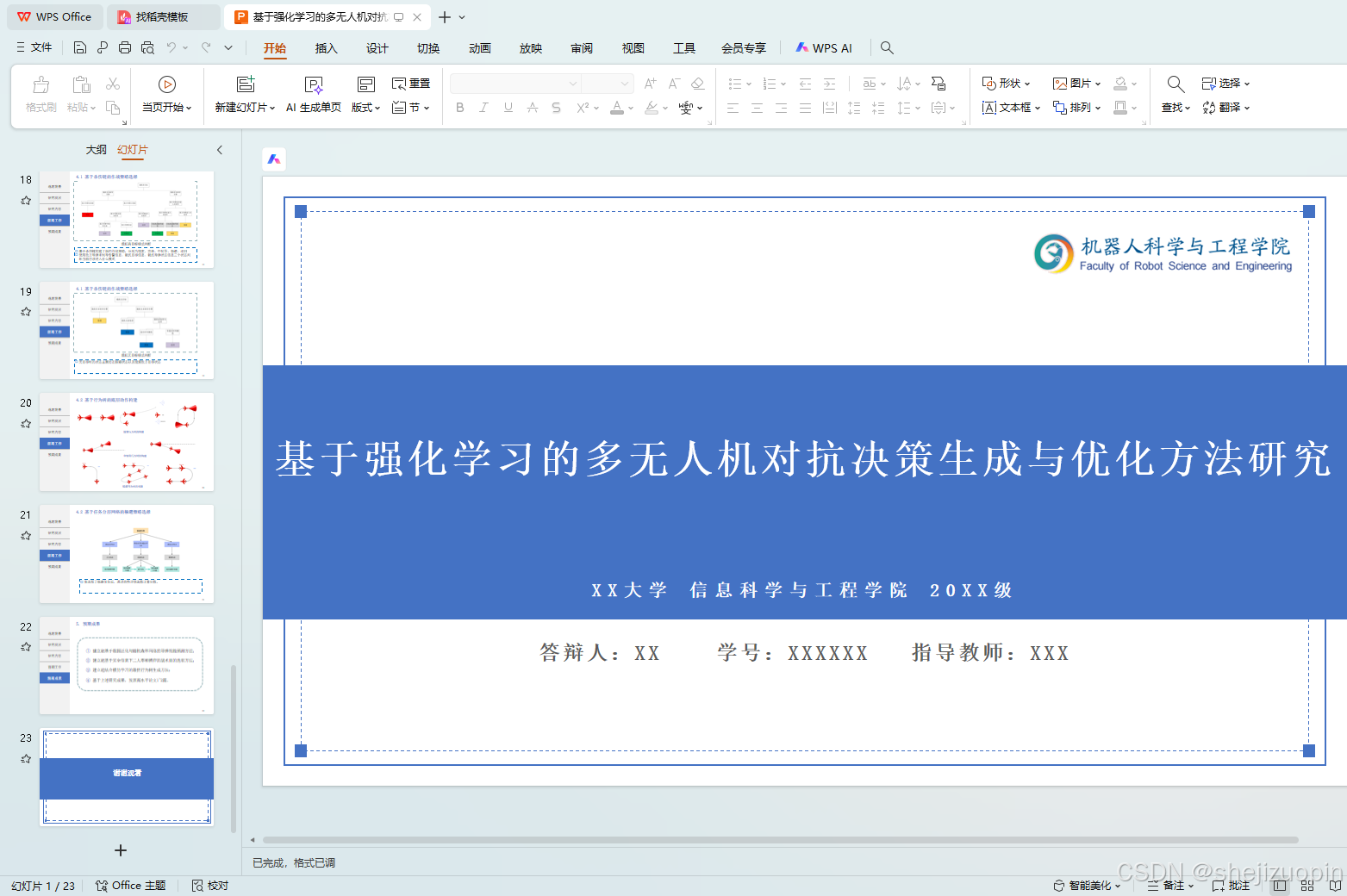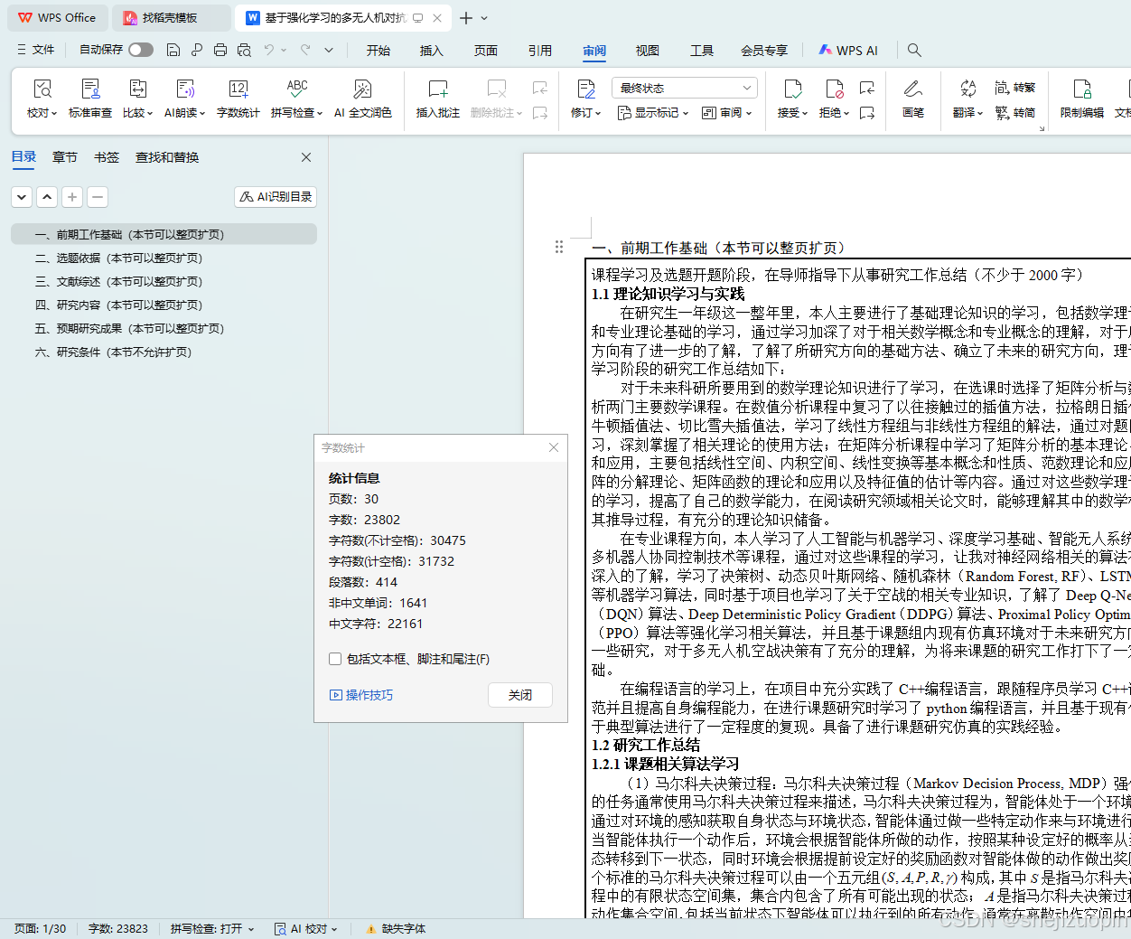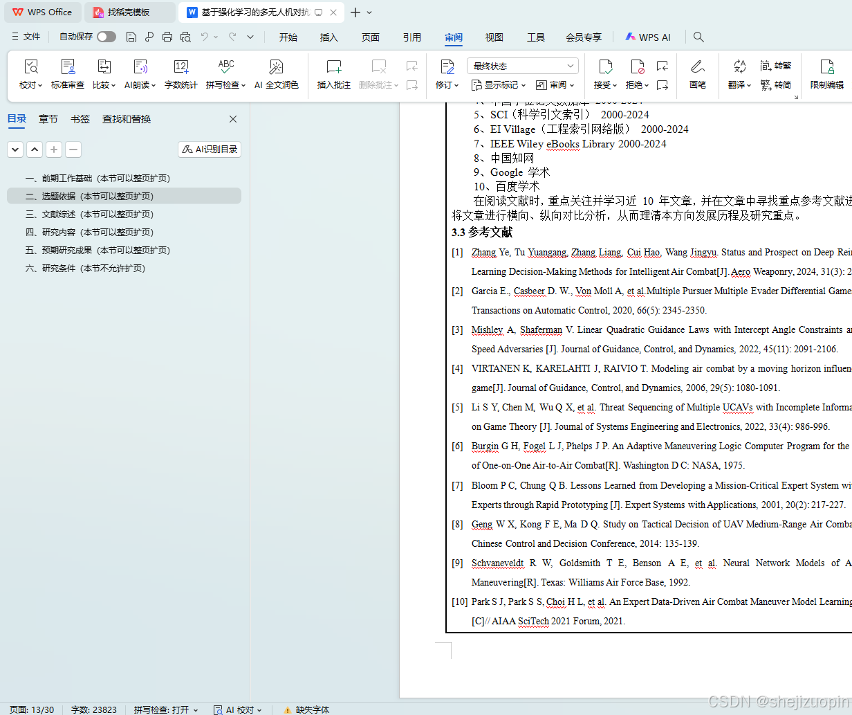 在专业课程方向,本人学习了人工智能与机器学习、深度学习基础、智能无人系统基础、多机器人协同控制技术等课程,通过对这些课程的学习,让我对神经网络相关的算法有了很深入的了解,学习了决策树、动态贝叶斯网络、随机森林(Random Forest, RF)、LSTM网络等机器学习算法,同时基于项目也学习了关于空战的相关专业知识,了解了Deep Q-Networks(DQN)算法、Deep Deterministic Policy Gradient(DDPG)算法、Proximal Policy Optimization(PPO)算法等强化学习相关算法,并且基于课题组内现有仿真环境对于未来研究方向做了一些研究,对于多无人机空战决策有了充分的理解,为将来课题的研究工作打下了一定的基础。