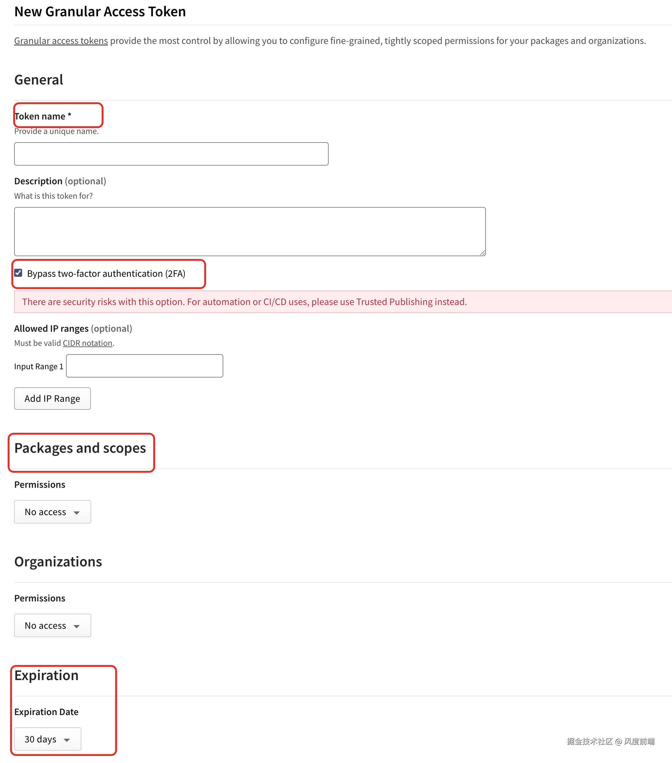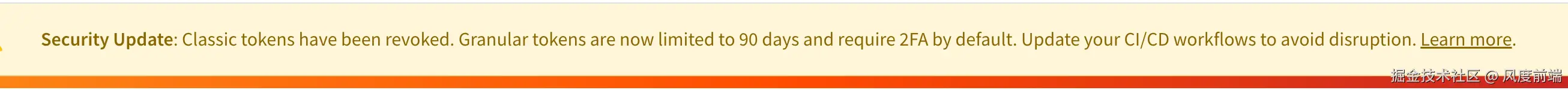 - npm 强制启用「细粒度令牌 (Granular tokens)」 :这是新版的安全令牌,有效期默认只有 90 天,到期就要重新生成;
