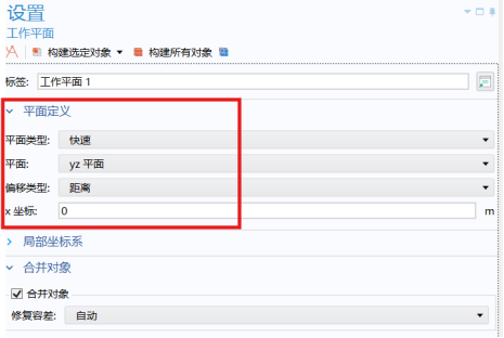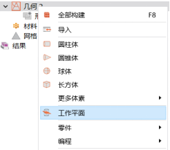 同样的,建立一个三维几何,创建工作平面。设置工作平面的类型和所在平面。
