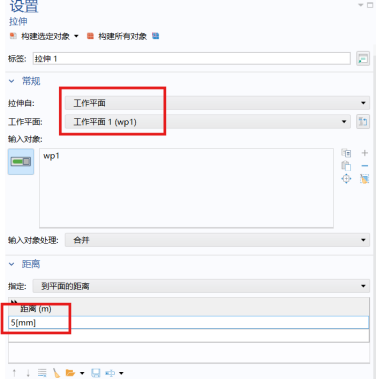 在拉伸中,设置拉伸的目标和拉伸距离。