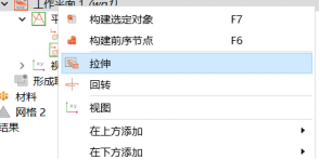 需要注意的是,由于工作平面无限大,需要绘制出实际平面几何后才能进行拉伸或回转操作。