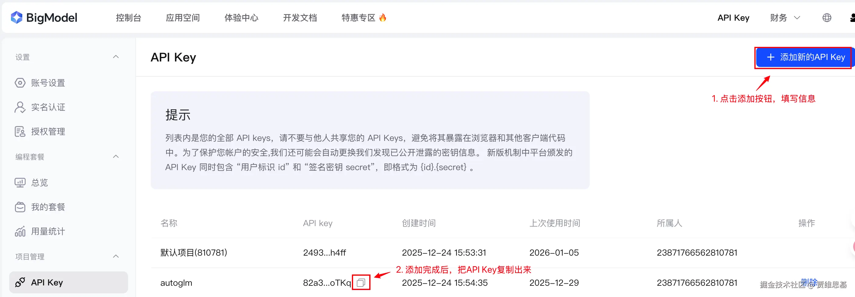 3. 注册API Key
