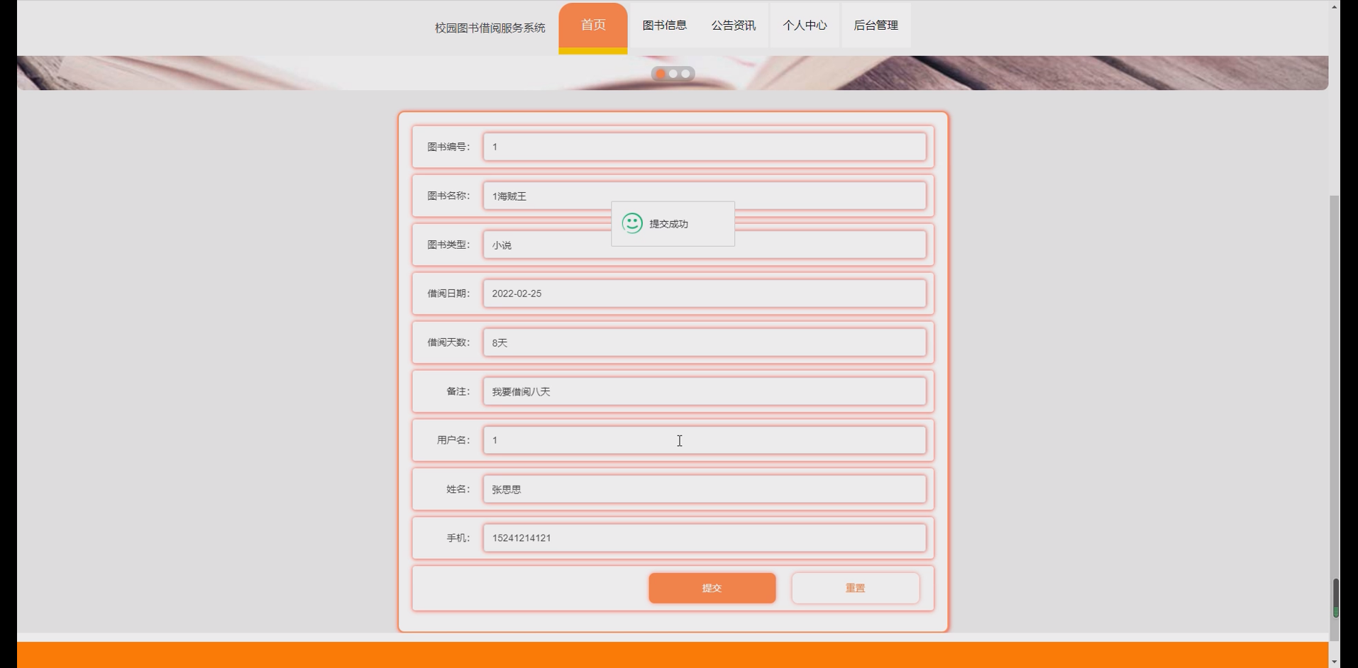 图书借阅管理模块:实现图书预约、借阅申请、借阅审核、借阅记录查询等功能。读者可线上提交借阅申请,管理员审核通过后完成借阅登记,系统自动记录借阅时间、应还时间等信息,并设置逾期提醒。