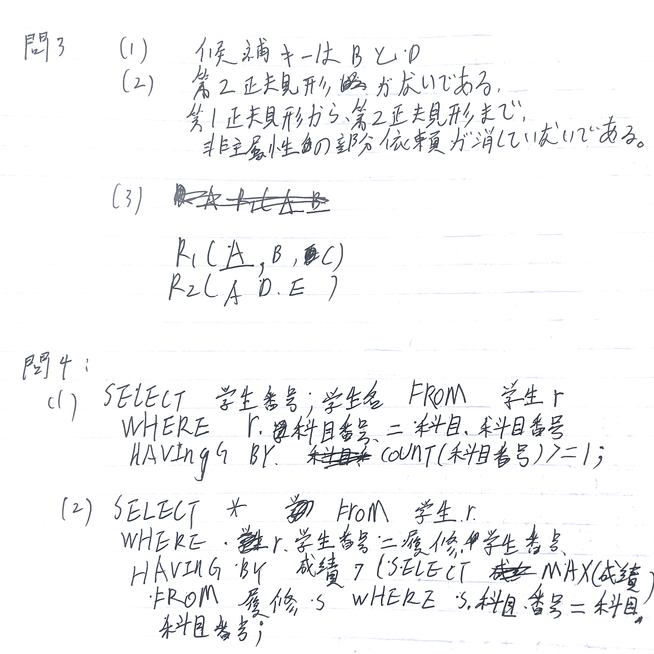 (2) 関係 ( R ) が 第 2 正規形 であるか判定し,理由を述べよ。