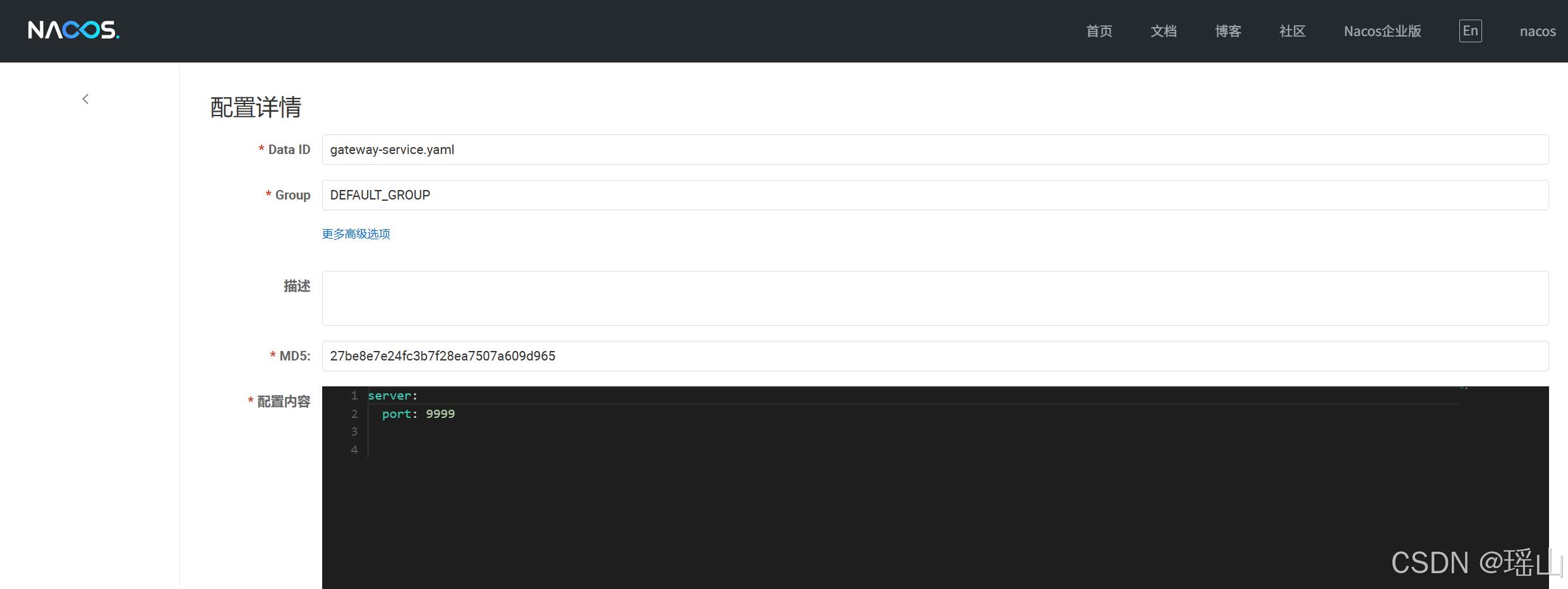 nacos添加配置gateway-service.yaml