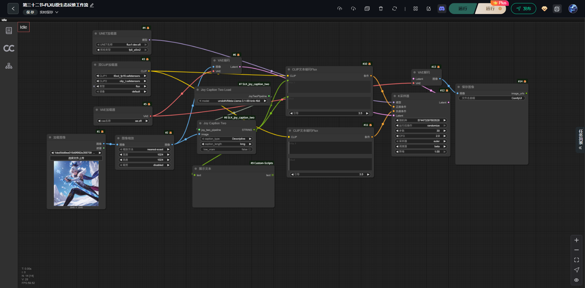 输入图片 → JoyCaption 自动反推描述 → 送入 FLUX 双 CLIP 条件 → KSampler 生成 → VAE 解码 → 保存