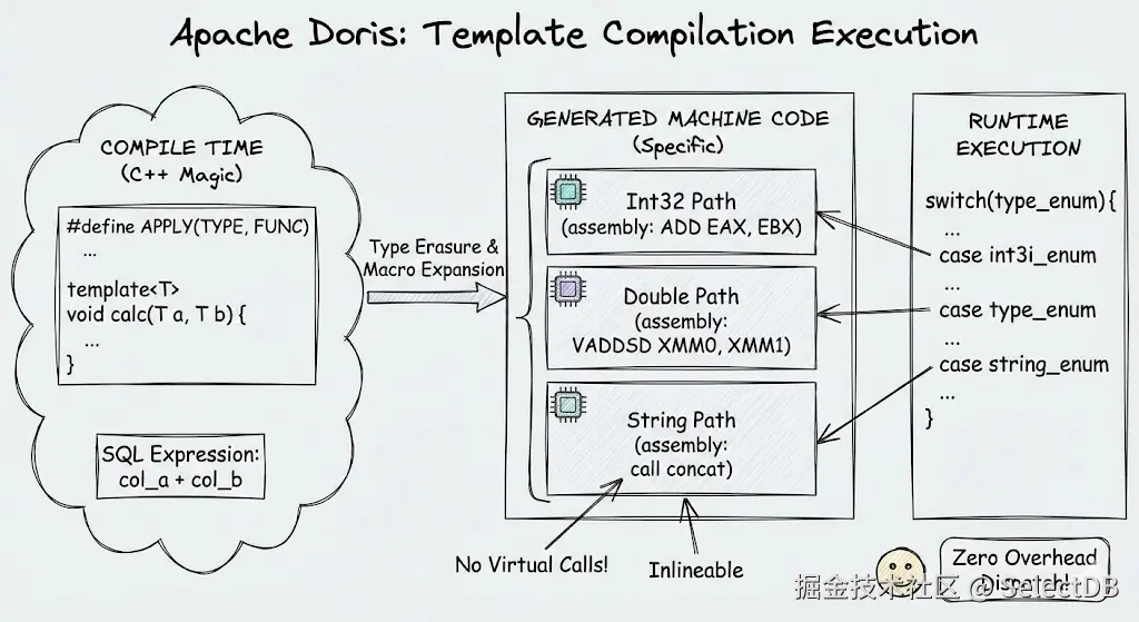 Apache Doris 的演进给我们提供了一个生动的答案------它不仅跟随硬件与编译器的发展而演进,更主动地通过向量化、模板化、指令级并行与精细的用户态调度模式,将每一代 CPU 的潜力推向理论极限。