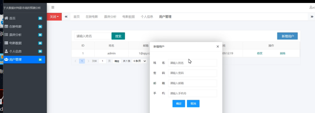 用户管理就是能够将系统当中所有注册用户进行一个管理,这样的管理方式可以防止用户在丢失密码之后联系管理员可以进行密码的修改。另一方面,可以对整个系统的用户进行一个有效的把控。